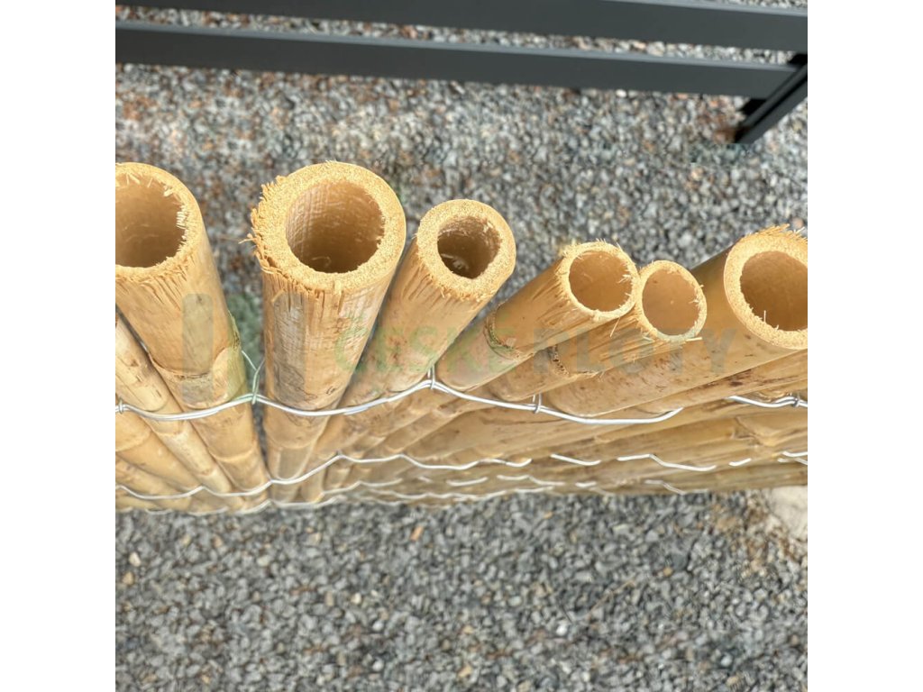 Bambus je možné natírat, lakovat a je odolnější a pevnější než rákosová rohož. Námi nabízený bambus má plný kulatý tvar o průměru 2 - 3 cm. Délka bambusového plotu je 5 metrů.