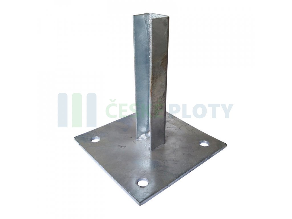 Patka s plotnou pro sloupek 38 mm. Patka je opatřena žárově zinkovaným povrchem, který ji dává dlouhou životnost. Patku s plotnou využijete pro fixaci sloupku.