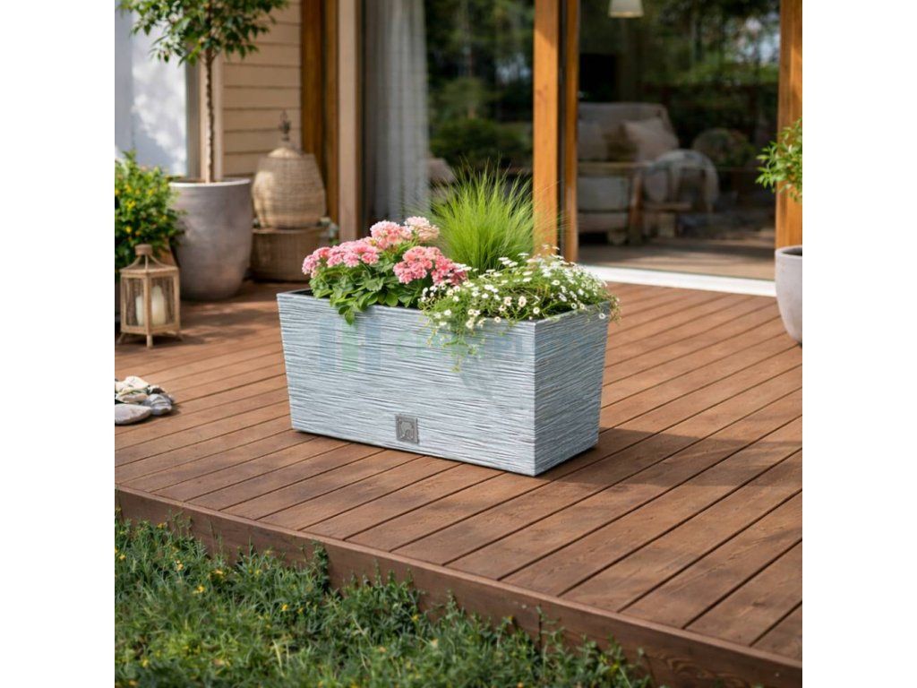 Truhlík je vyroben z kvalitního plastu odolného vůči UV záření, což zajišťuje stálobarevnost a dlouhou životnost i při venkovním použití. Je vhodný pro celoroční využití na terasách, balkonech i v interiéru.