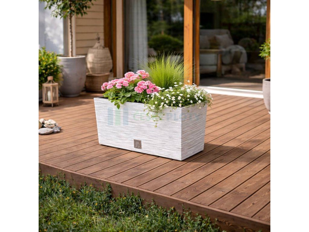 Truhlík je vyroben z kvalitního plastu odolného vůči UV záření, což zajišťuje stálobarevnost a dlouhou životnost i při venkovním použití. Je vhodný pro celoroční využití na terasách, balkonech i v interiéru.