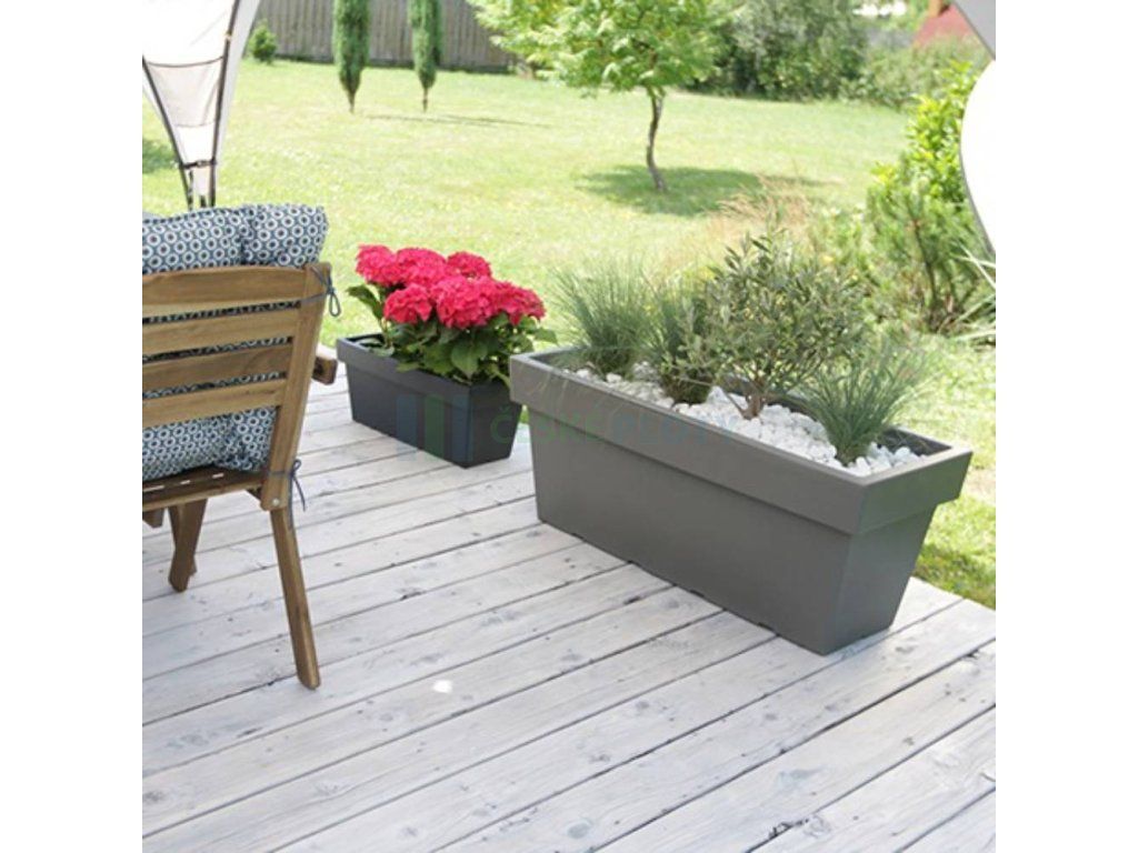 Tento venkovní truhlík je vyroben z odolného plastu, který dobře zvládá běžné povětrnostní podmínky a zároveň se snadno udržuje. Výhodou je také nízká hmotnost, takže se s truhlíkem pohodlně manipuluje i při přesouvání nebo sezónním úklidu. Materiál je UV odolný.