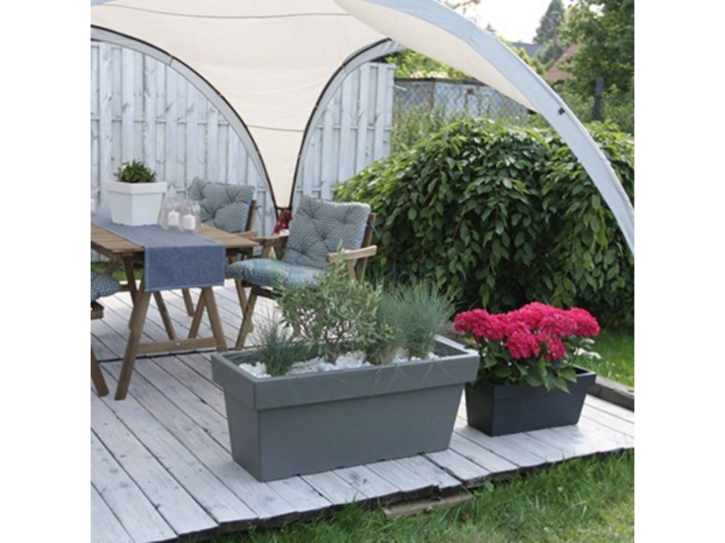 Tento venkovní truhlík je vyroben z odolného plastu, který dobře zvládá běžné povětrnostní podmínky a zároveň se snadno udržuje. Výhodou je také nízká hmotnost, takže se s truhlíkem pohodlně manipuluje i při přesouvání nebo sezónním úklidu. Materiál je UV odolný.