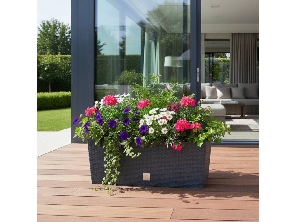 RATO CASE je elegantní plastový truhlík, který se skvěle hodí pro pěstování květin, bylinek i menších okrasných rostlin ve venkovním prostoru. Díky modernímu vzhledu a praktickému provedení výborně doplní balkon, terasu, parapet i vstupní prostor u domu.
