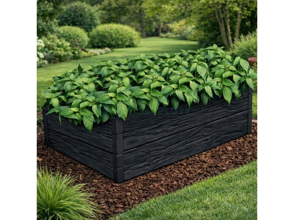 Vyvýšený betonový záhon dřevo grafit