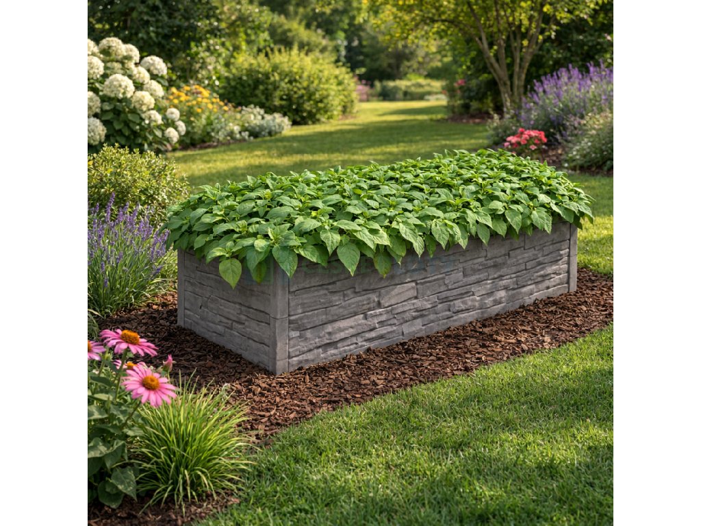 Vyvýšený betonový záhon šedý