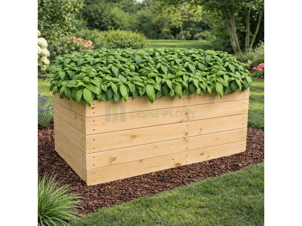 Moderní vyvýšený záhon vytvořený z dřevěných plotovek. Celá konstrukce má vysokou stabilitu a také dlouhou životnost díky kovovým jeklům s vnějším poplastováním. Jekly mají spodní přesah 15 cm a jsou na spodní straně pokoseny. Díky této úpravě lze vyvýšený záhon jednoduše zapíchnout do půdy, což maximalizuje jeho fixaci a stabilitu. Záhon je bez dna!